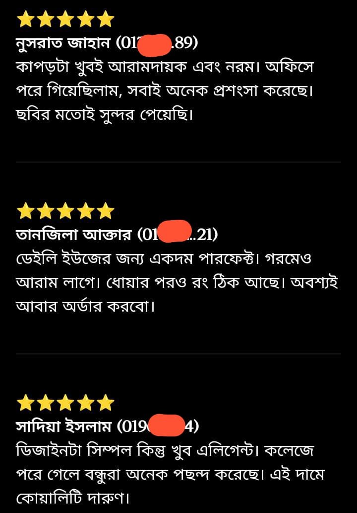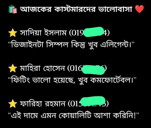 ⚠️ প্রিয় ক্রেতা, ১০০% কনফার্ম হয়ে অর্ডার করবেন। নিশ্চিত ভাবেই সেম টু সেম ড্রেস পাবেন সব ঠিক থাকার পরেও অজুহাত দেখিয়ে ফেরত দিলে ডেলিভারি চার্জ দিতে হবে। ⚠️